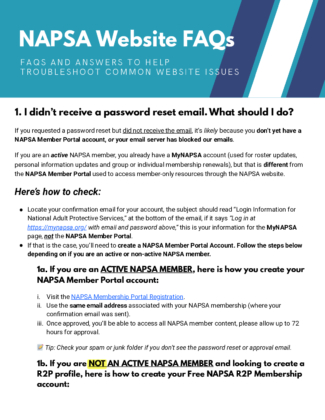 The National Adult Protective Services Association (NAPSA) is a national non-profit 501 (c)(3) organization with members in all fifty states, D.C., and the territories. Formed in 1989, the goal of NAPSA is to provide Adult Protective Services (APS) programs a forum for sharing information, solving problems, and improving the quality of services for victims of elder and vulnerable adult mistreatment. Its mission is to strengthen the capacity of APS at the national, state, and local levels, to effectively and efficiently recognize, report, and respond to the needs of elders and adults with disabilities who are the victims of abuse, neglect, or exploitation, and to prevent such abuse whenever possible.